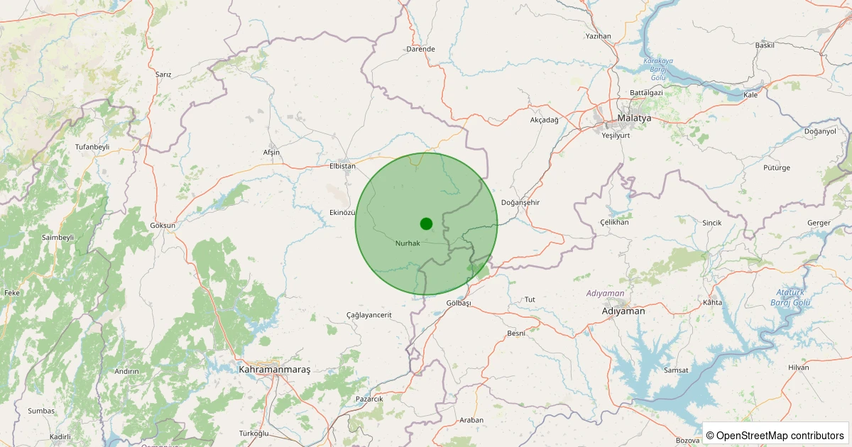 Son 7 gün içinde Nurhak - K.Tatlar Pınarbaşı noktasından 100 km yarıçap içerisinde meydana gelen diğer depremler: