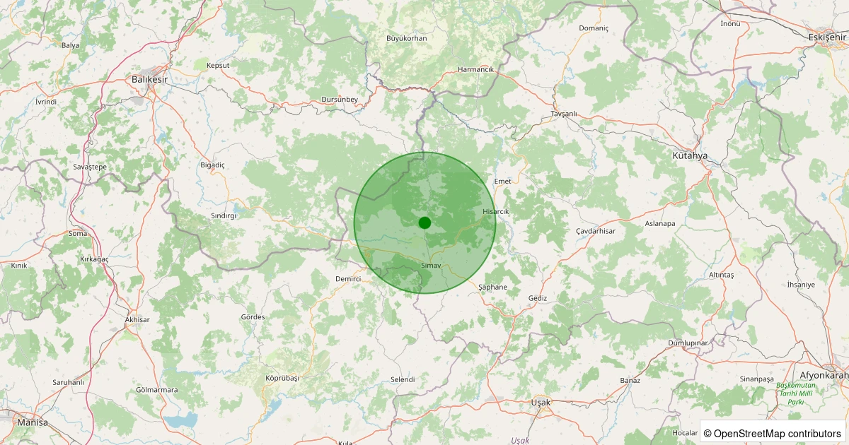 Son 7 gün içinde Simav - Hamzabey noktasından 100 km yarıçap içerisinde meydana gelen diğer depremler: