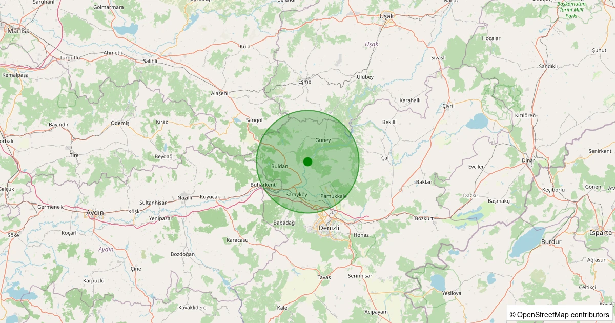 Son 7 gün içinde Buldan - Yenicekent noktasından 100 km yarıçap içerisinde meydana gelen diğer depremler:
