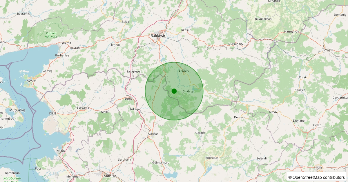 Son 7 gün içinde Sındırgı - Alakır noktasından 100 km yarıçap içerisinde meydana gelen diğer depremler: