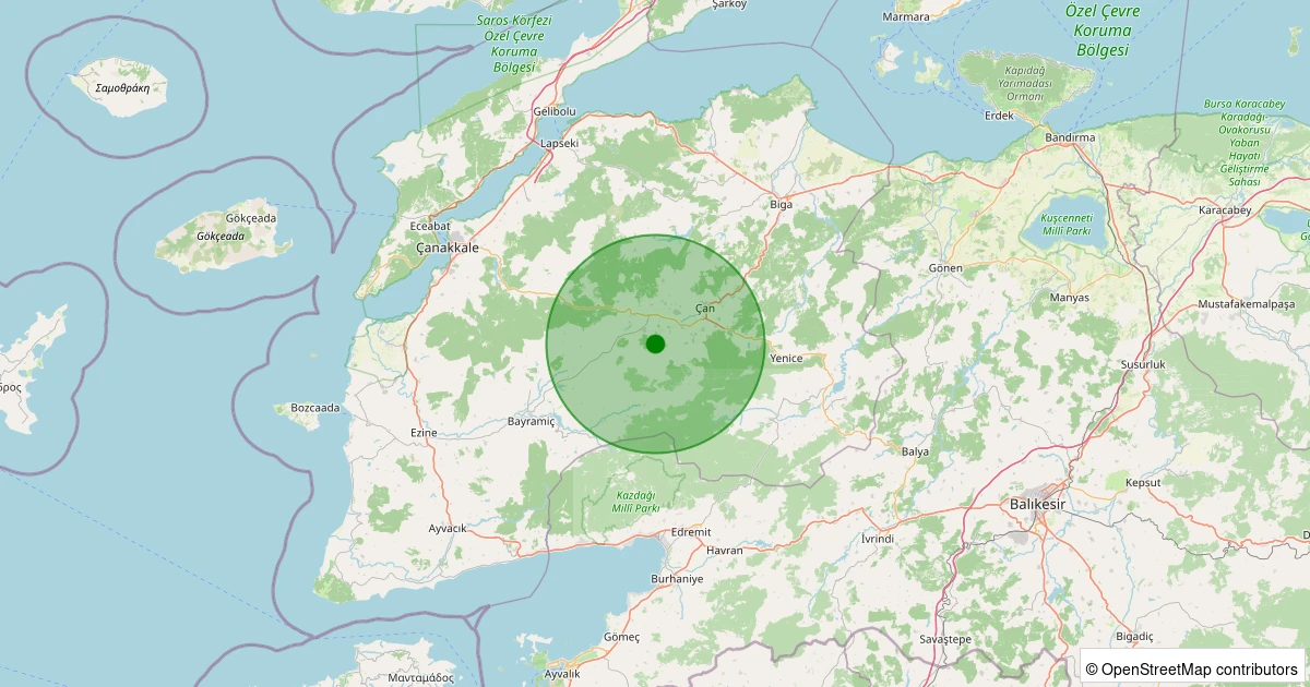 Kandilli üzerinden alınan ölçümlere göre Çan - Dereoba Köyü bölgesinde 07.04.2026 20:11 tarihinde gece saatlerinde 1.6 büyüklüğünde bir deprem meydana geldi.