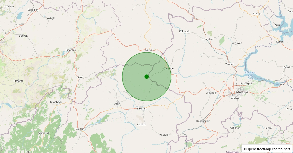 Son 7 gün içinde Elbistan - Sarıyatak Köyü noktasından 100 km yarıçap içerisinde meydana gelen diğer depremler: