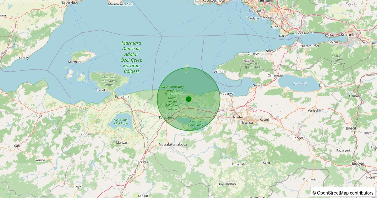 Son bir hafta içerisinde Bursa şehri Karacabey noktasından 100 km yarıçap içerisinde toplamda 47 deprem kaydedilmiştir. Bu depremlerden en büyüğü 2.6 büyüklüğünde ve en sığ odaklısı 0.00 kilometre derinlikte gerçekleşmiştir.
