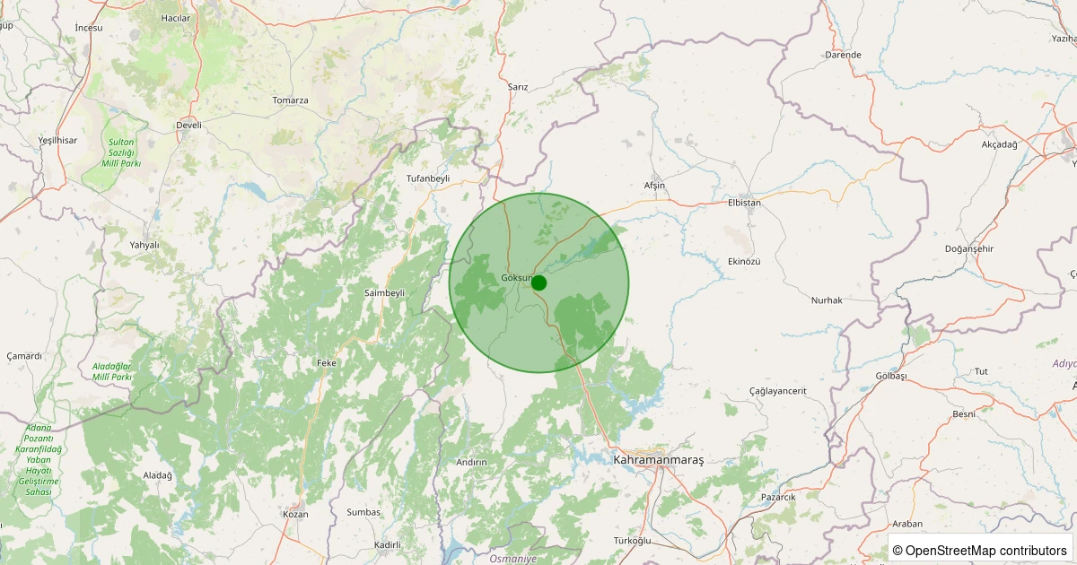 Son 7 gün içinde Göksun noktasından 100 km yarıçap içerisinde meydana gelen diğer depremler: