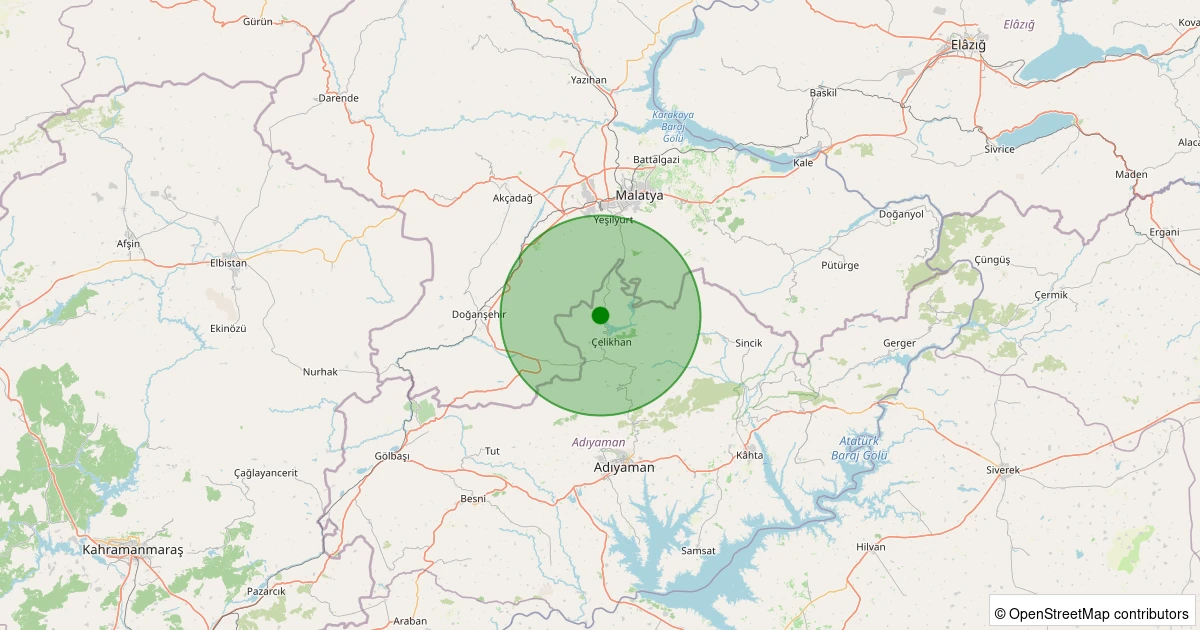 Son 7 gün içinde Çelikhan - Gölbağı Köyü noktasından 100 km yarıçap içerisinde meydana gelen diğer depremler: