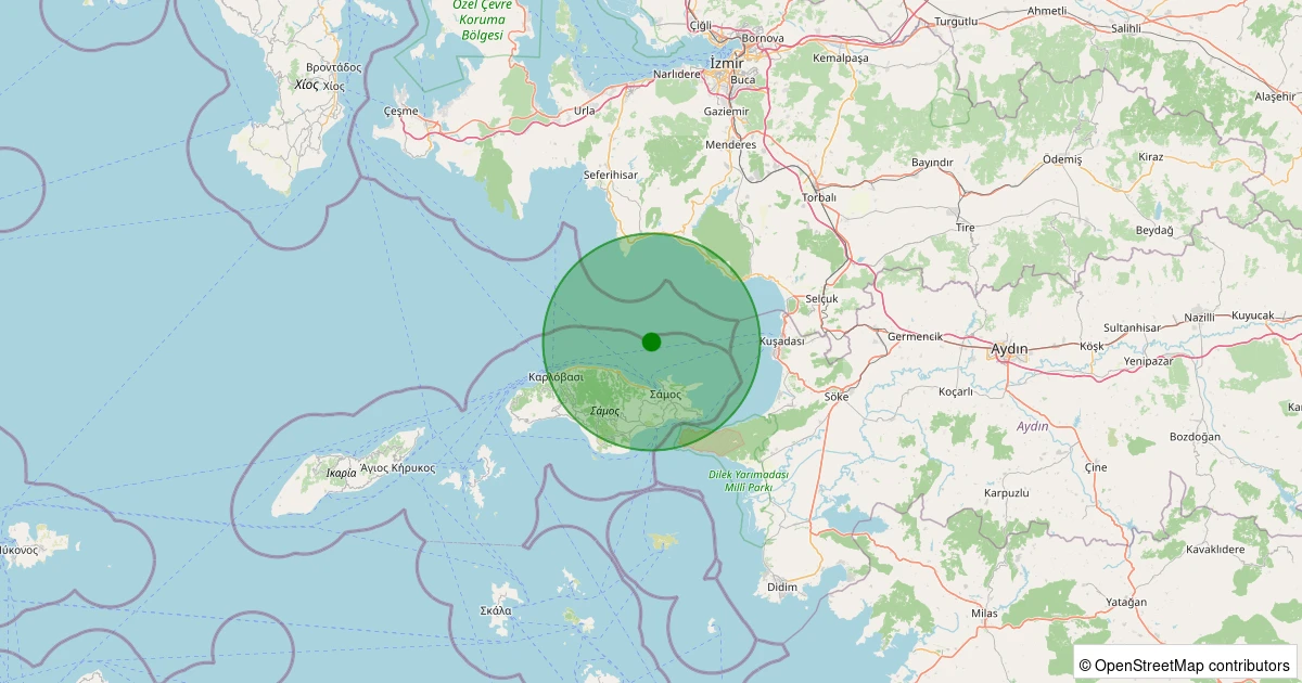 Son 7 gün içinde KUSADASI noktasından 100 km yarıçap içerisinde meydana gelen diğer depremler: