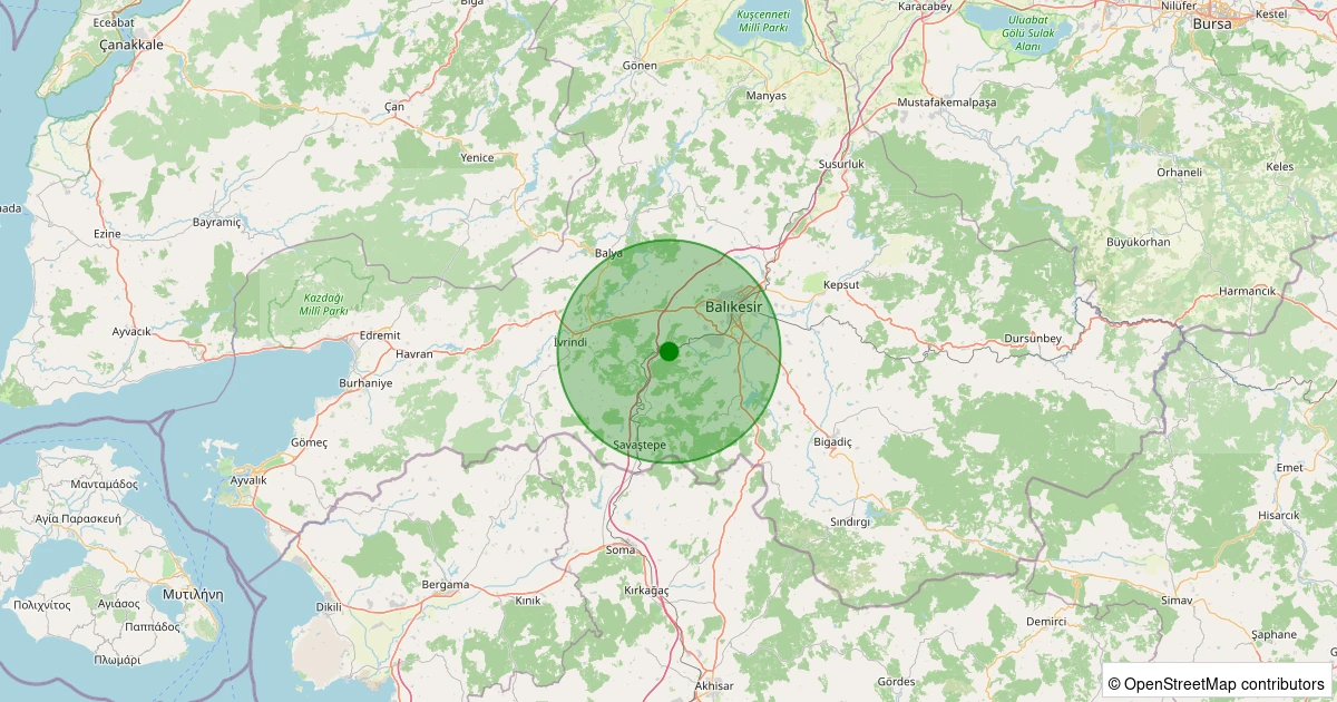 Son 7 gün içinde Altıeylül - Bahçedere noktasından 100 km yarıçap içerisinde meydana gelen diğer depremler: