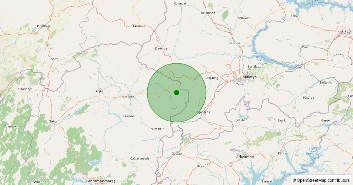 Son 7 gün içinde Elbistan - Topallı Köyü noktasından 100 km yarıçap içerisinde meydana gelen diğer depremler: