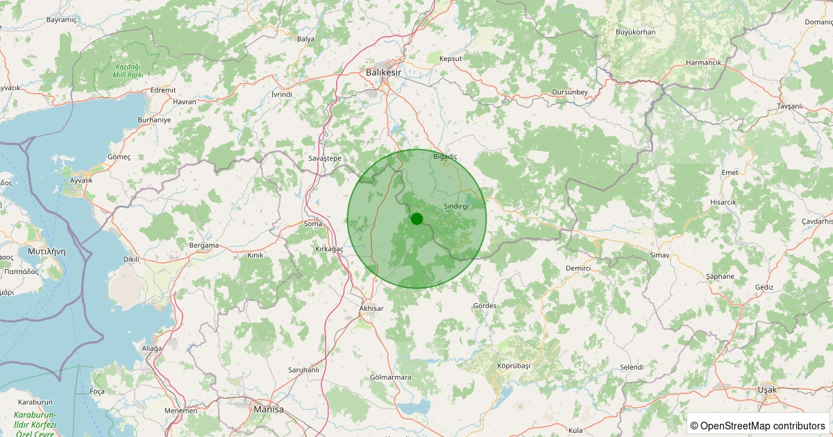 Son 7 gün içinde Sındırgı - Şahinkaya noktasından 100 km yarıçap içerisinde meydana gelen diğer depremler: