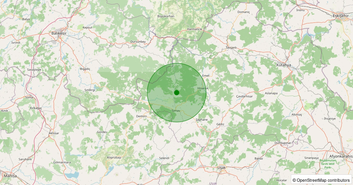 Son 7 gün içinde Simav - Yemişli Köyü noktasından 100 km yarıçap içerisinde meydana gelen diğer depremler: