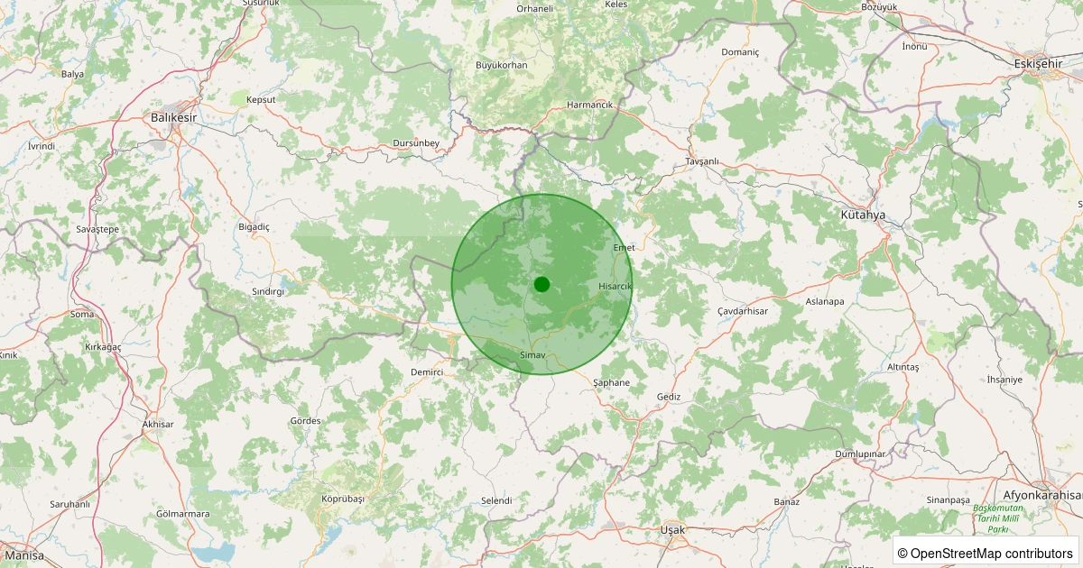 Son 7 gün içinde Simav - Yeşildere Köyü noktasından 100 km yarıçap içerisinde meydana gelen diğer depremler: