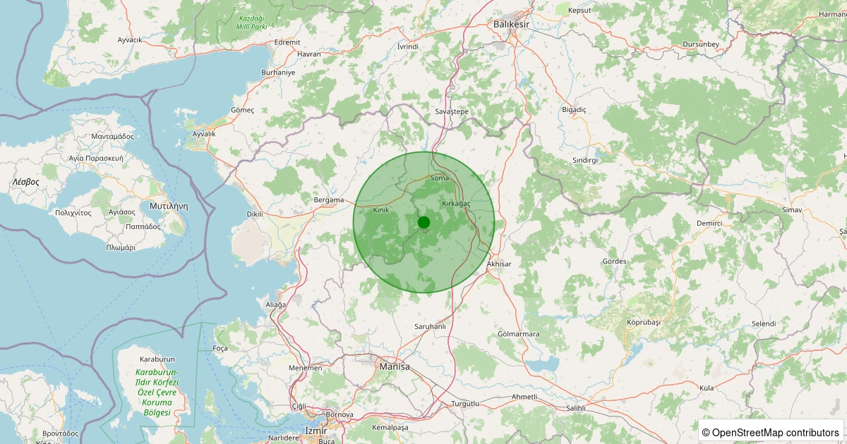 Son 7 gün içinde Soma - Eğnez noktasından 100 km yarıçap içerisinde meydana gelen diğer depremler: