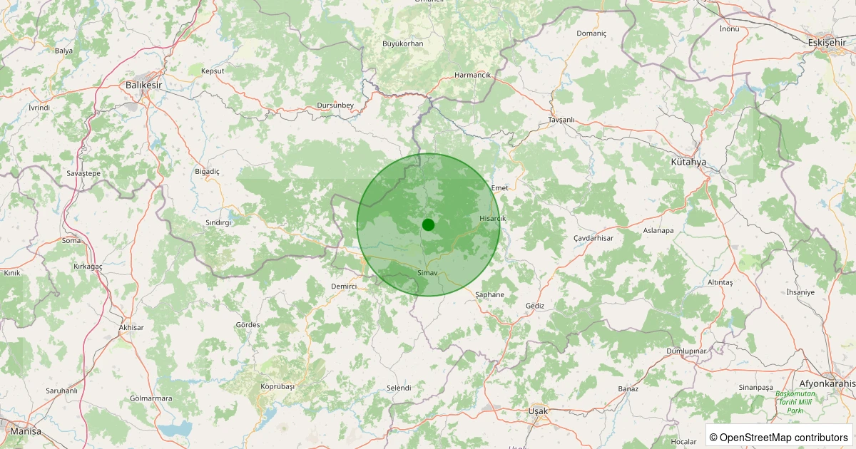 Son 7 gün içinde Simav - Yemişli Köyü noktasından 100 km yarıçap içerisinde meydana gelen diğer depremler: