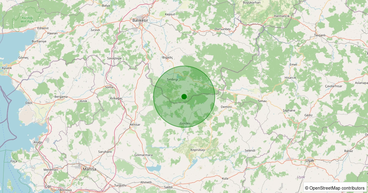 Son 7 gün içinde Sındırgı - Yüreğil/Yeni noktasından 100 km yarıçap içerisinde meydana gelen diğer depremler: