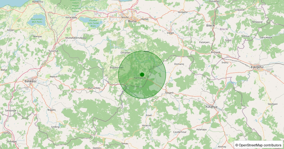 Son 7 gün içinde Harmancık - Kılavuzlar noktasından 100 km yarıçap içerisinde meydana gelen diğer depremler: