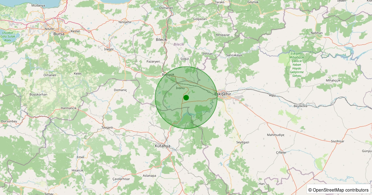 Son 7 gün içinde İnönü - Tutluca noktasından 100 km yarıçap içerisinde meydana gelen diğer depremler: