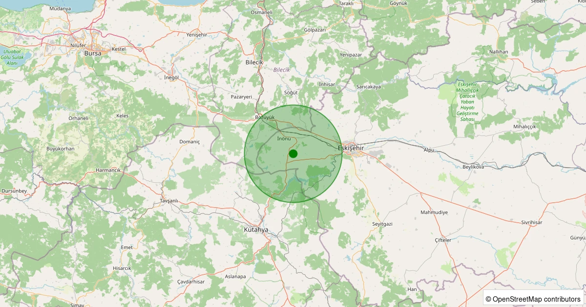 Son 7 gün içinde İnönü - Tutluca noktasından 100 km yarıçap içerisinde meydana gelen diğer depremler: