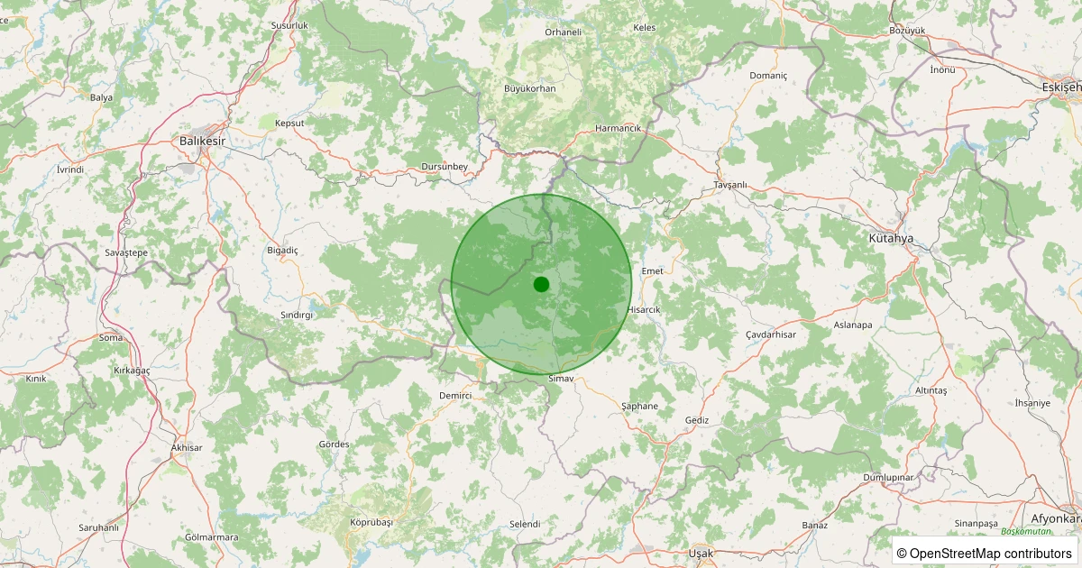 Son 7 gün içinde Simav - Ortacı Köyü noktasından 100 km yarıçap içerisinde meydana gelen diğer depremler: