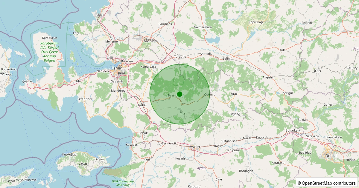 Son 7 gün içinde Bayındır - Yusuflu noktasından 100 km yarıçap içerisinde meydana gelen diğer depremler: