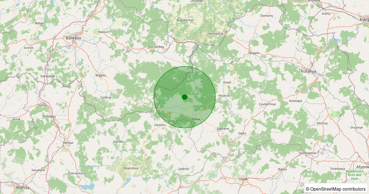 Son 7 gün içinde Simav - Kayalıdere Köyü noktasından 100 km yarıçap içerisinde meydana gelen diğer depremler: