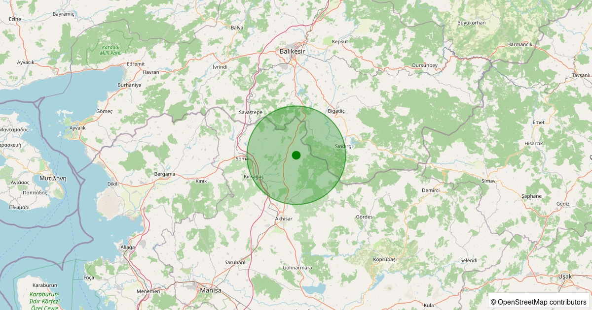 Son 7 gün içinde Kırkağaç - Dualar noktasından 100 km yarıçap içerisinde meydana gelen diğer depremler: