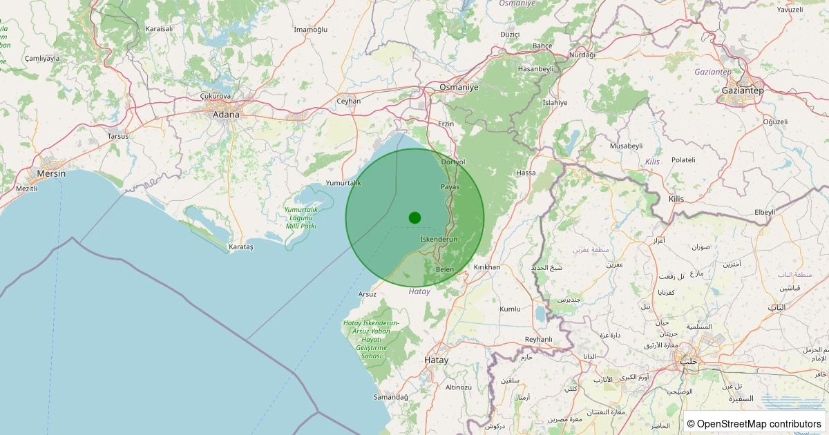 Son bir hafta içerisinde Akdeniz - İskenderun Körfezi - [10.56 km] İskenderun (Hatay) noktasından 100 km yarıçap içerisinde toplamda 26 deprem kaydedilmiştir. Bu depremlerden en büyüğü 2.7 büyüklüğünde ve en sığ odaklısı 1.60 kilometre derinlikte gerçekleşmiştir.