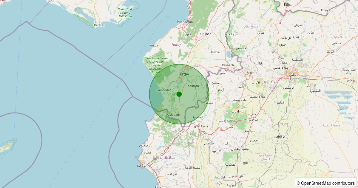 Son 7 gün içinde Yayladağı - Şenköy/Cumhuriyet noktasından 100 km yarıçap içerisinde meydana gelen diğer depremler: