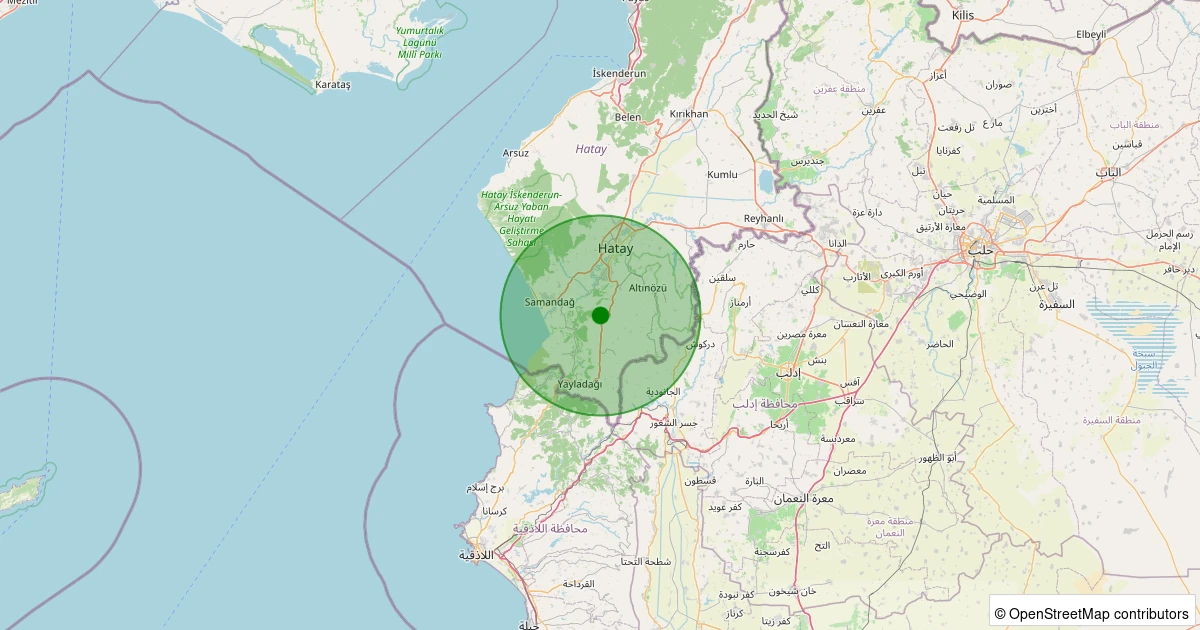 Son 7 gün içinde Yayladağı - Şenköy/Cumhuriyet noktasından 100 km yarıçap içerisinde meydana gelen diğer depremler: