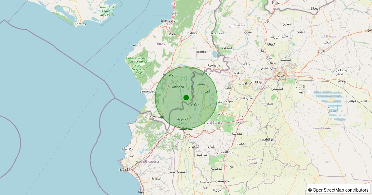 Son 7 gün içinde Altınözü - Günvuran noktasından 100 km yarıçap içerisinde meydana gelen diğer depremler: