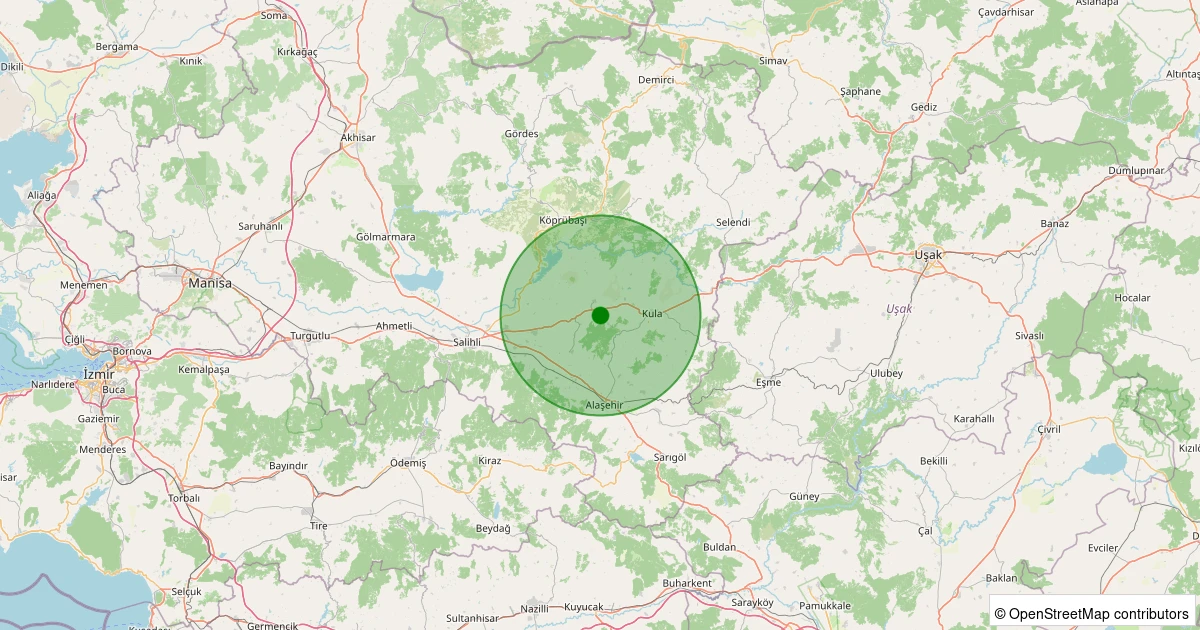 Son 7 gün içinde Kula - Gökçeören/Kale noktasından 100 km yarıçap içerisinde meydana gelen diğer depremler: