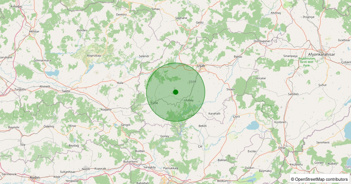 Son bir hafta içerisinde Uşak şehri Ulubey - Gümüşkol Köyü noktasından 100 km yarıçap içerisinde toplamda 875 deprem kaydedilmiştir. Bu depremlerden en büyüğü 4.9 büyüklüğünde ve en sığ odaklısı 0.00 kilometre derinlikte gerçekleşmiştir.