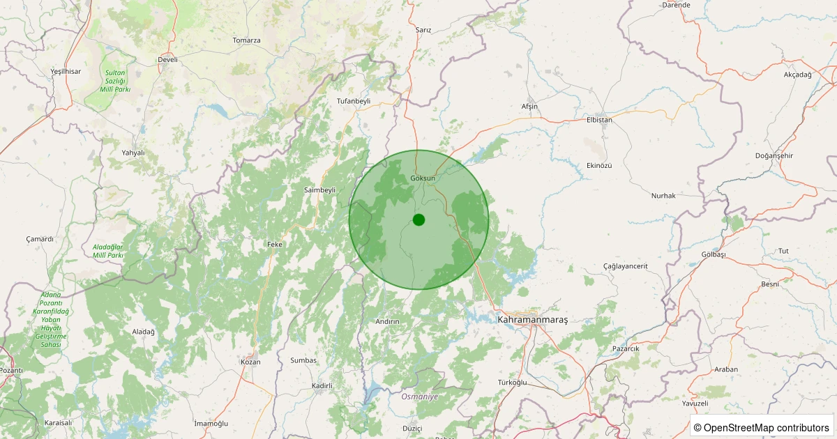 Son 7 gün içinde Göksun noktasından 100 km yarıçap içerisinde meydana gelen diğer depremler: