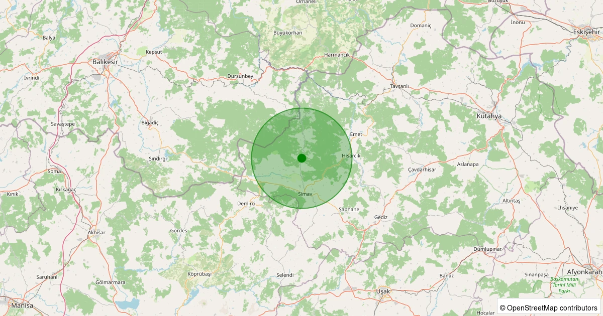 Son 7 gün içinde Simav - Yemişli Köyü noktasından 100 km yarıçap içerisinde meydana gelen diğer depremler: