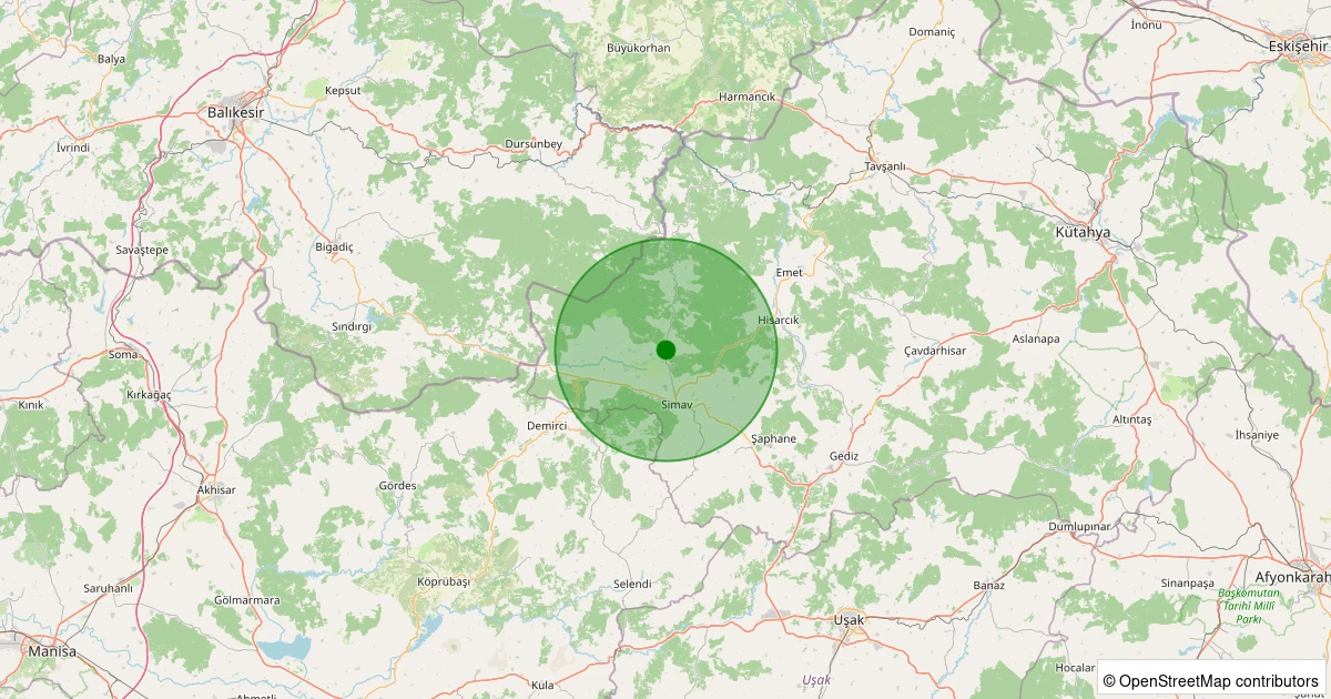 Son 7 gün içinde Simav - Hamzabey noktasından 100 km yarıçap içerisinde meydana gelen diğer depremler: