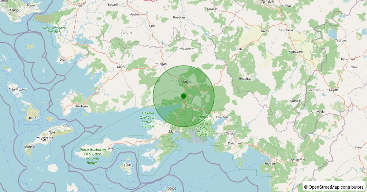 Son 7 gün içinde Menteşe noktasından 100 km yarıçap içerisinde meydana gelen diğer depremler: