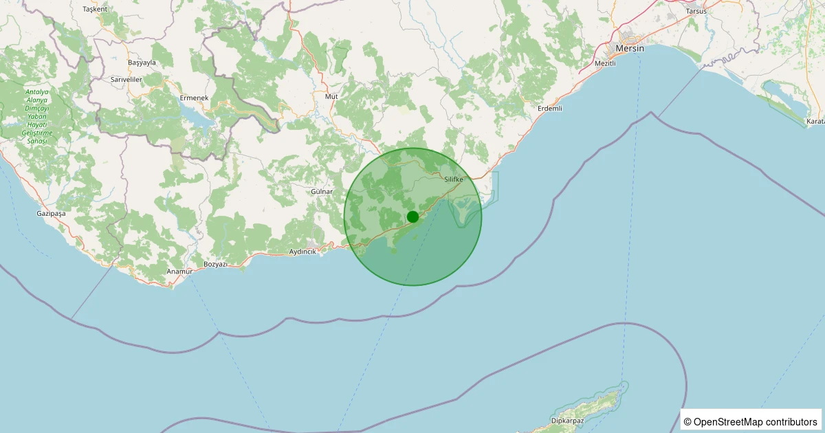 EMSC üzerinden alınan ölçümlere göre Silifke - Akdere bölgesinde 11.04.2026 12:02 tarihinde gece saatlerinde 1.3 büyüklüğünde bir deprem meydana geldi.