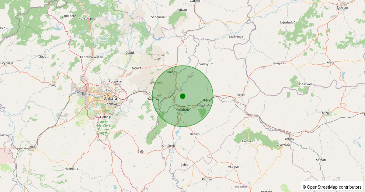 Son 7 gün içinde Yahşihan - Mahmutlarşarklısı Köyü noktasından 100 km yarıçap içerisinde meydana gelen diğer depremler: