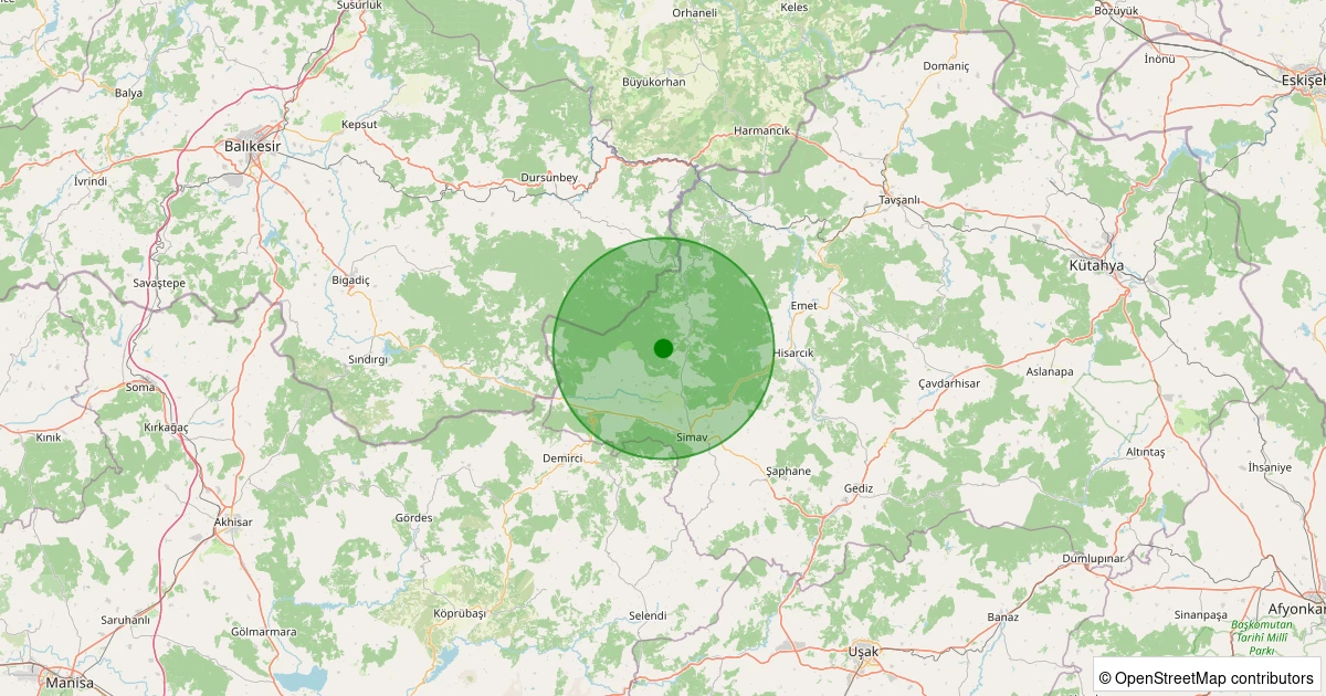 Son 7 gün içinde Simav - Yeniler Köyü noktasından 100 km yarıçap içerisinde meydana gelen diğer depremler: