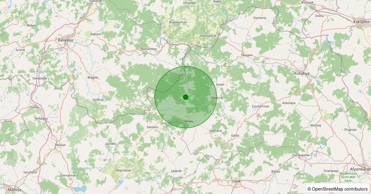 Son 7 gün içinde Simav - Karakoca Köyü noktasından 100 km yarıçap içerisinde meydana gelen diğer depremler: