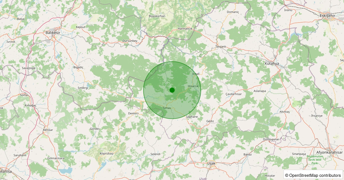 Son 7 gün içinde Simav - Yemişli Köyü noktasından 100 km yarıçap içerisinde meydana gelen diğer depremler: