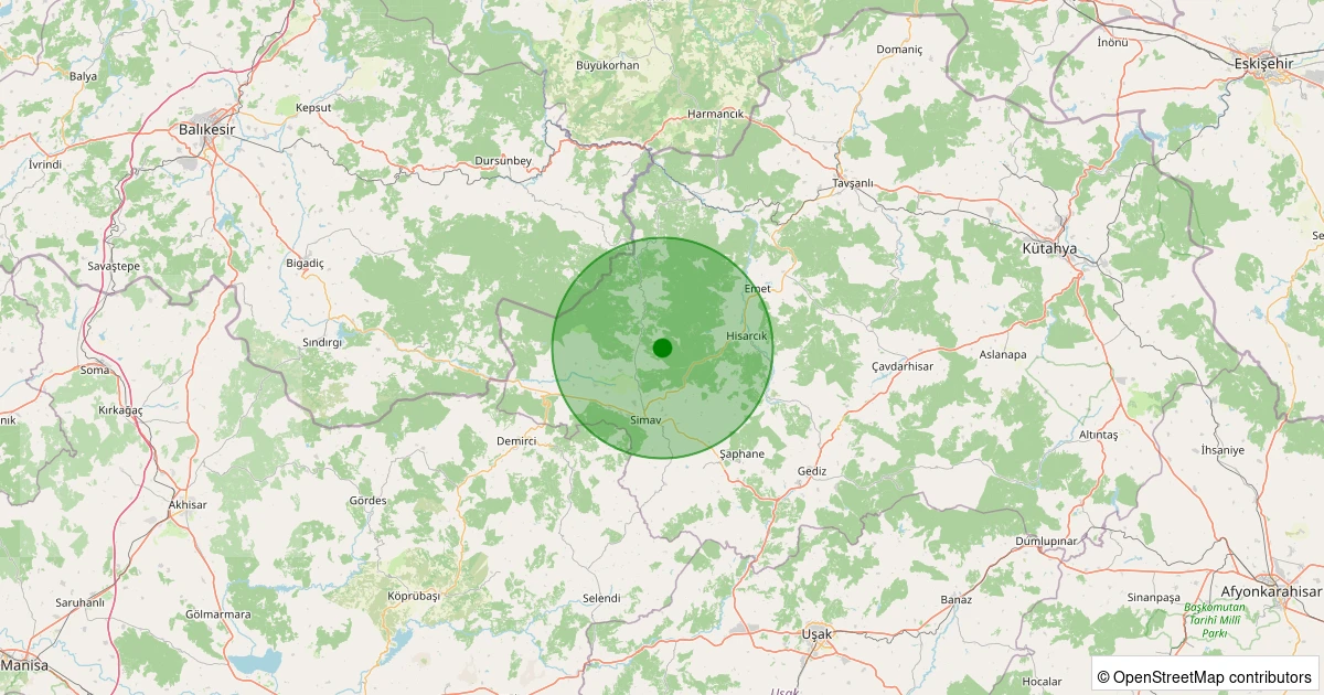Son 7 gün içinde Simav - Yemişli Köyü noktasından 100 km yarıçap içerisinde meydana gelen diğer depremler: