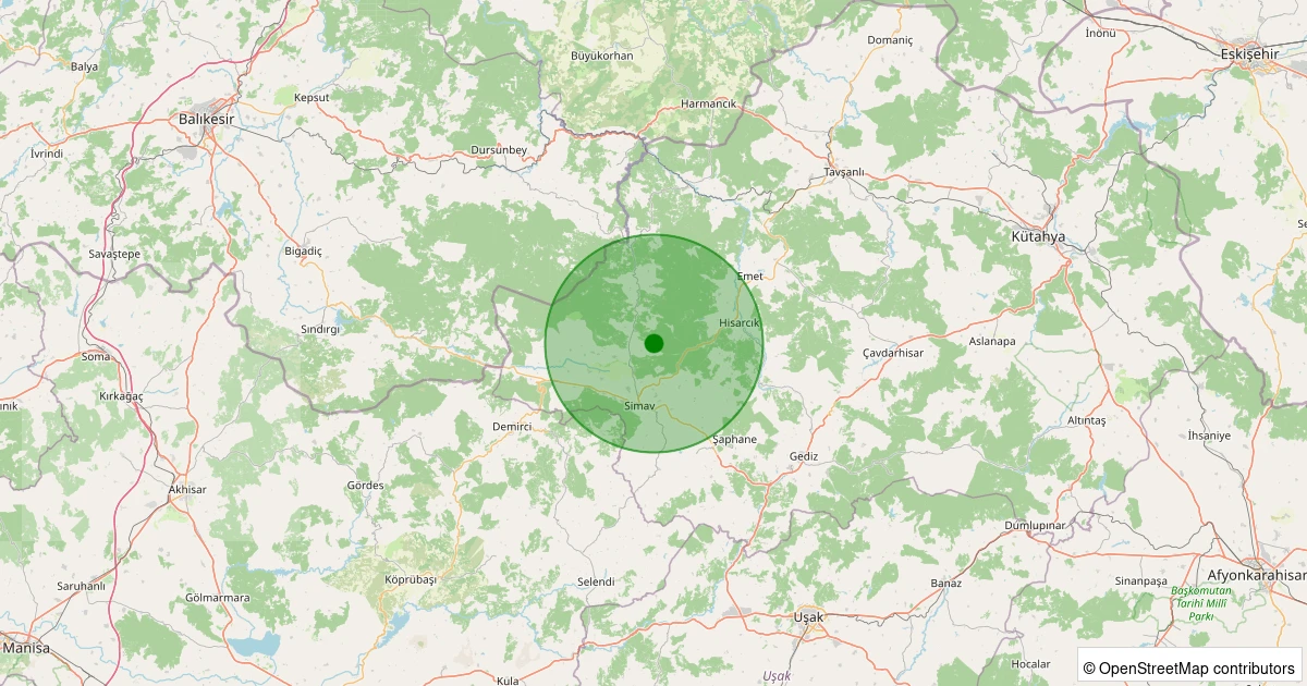 Son 7 gün içinde Simav - Yemişli Köyü noktasından 100 km yarıçap içerisinde meydana gelen diğer depremler: