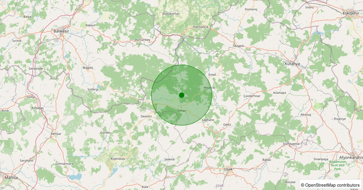 Son 7 gün içinde Simav - Eğirler Köyü noktasından 100 km yarıçap içerisinde meydana gelen diğer depremler: