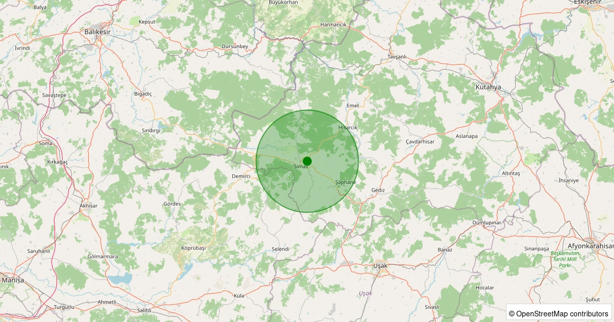 Son 7 gün içinde Simav - Muradınlar noktasından 100 km yarıçap içerisinde meydana gelen diğer depremler: