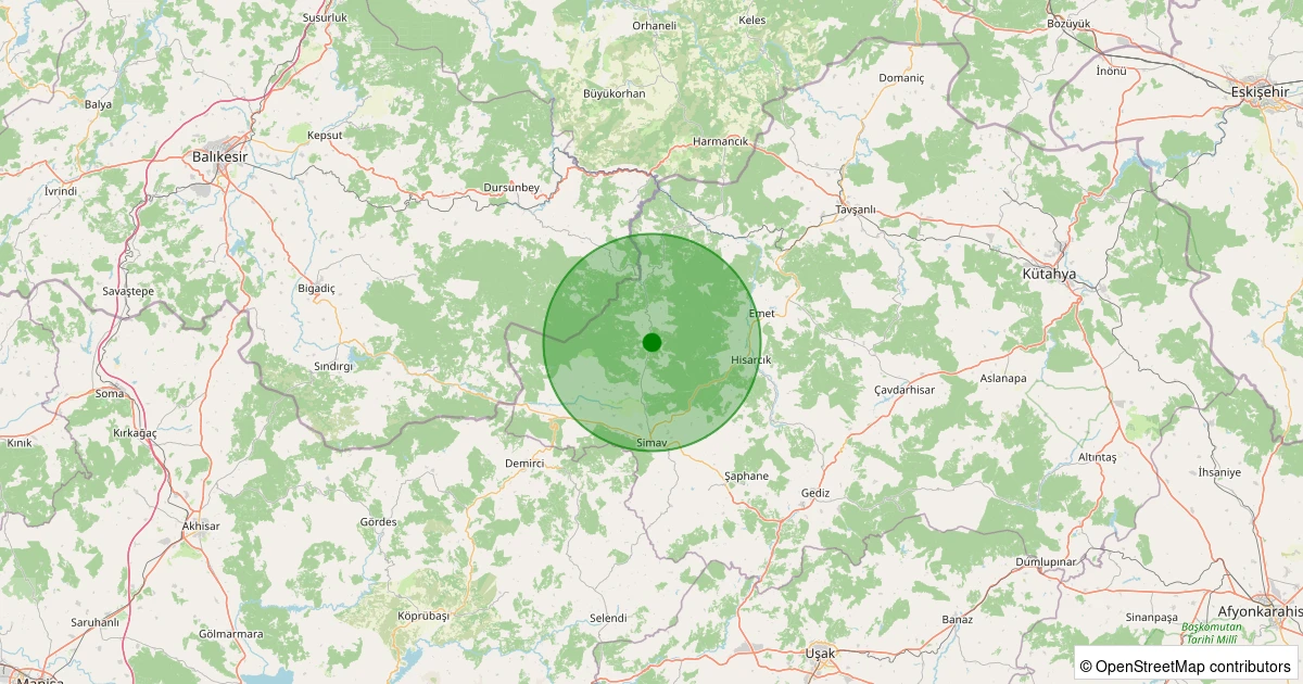 Son 7 gün içinde Simav - Yeşildere Köyü noktasından 100 km yarıçap içerisinde meydana gelen diğer depremler: