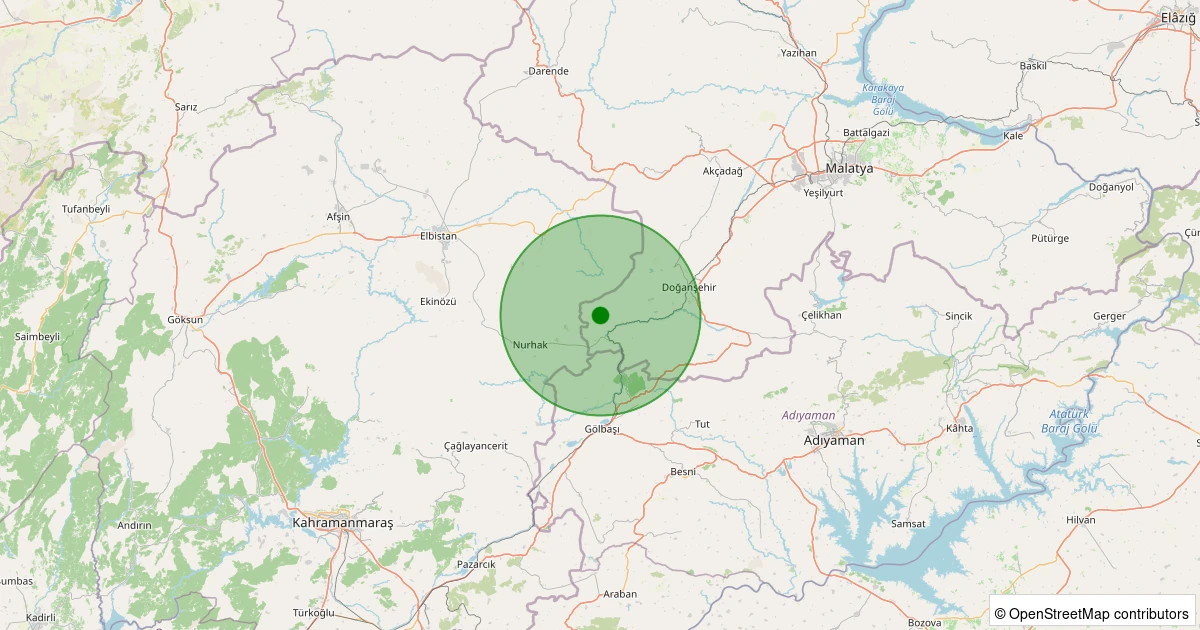 Son 7 gün içinde Doğanşehir - Gövdeli noktasından 100 km yarıçap içerisinde meydana gelen diğer depremler: