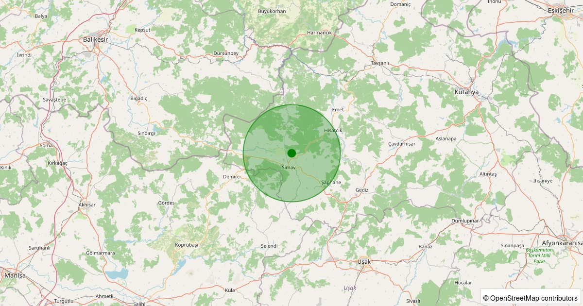 Son 7 gün içinde Simav - Naşa/Fatih noktasından 100 km yarıçap içerisinde meydana gelen diğer depremler:
