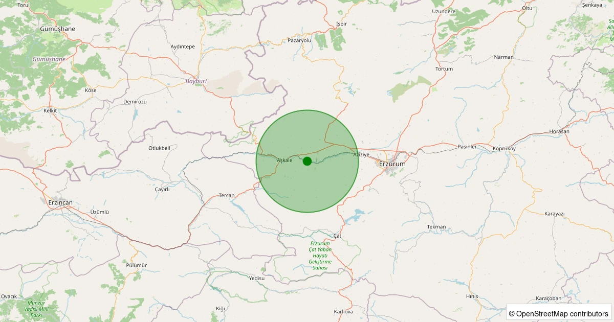 Son 7 gün içinde Aşkale - Ortabahçe noktasından 100 km yarıçap içerisinde meydana gelen diğer depremler: