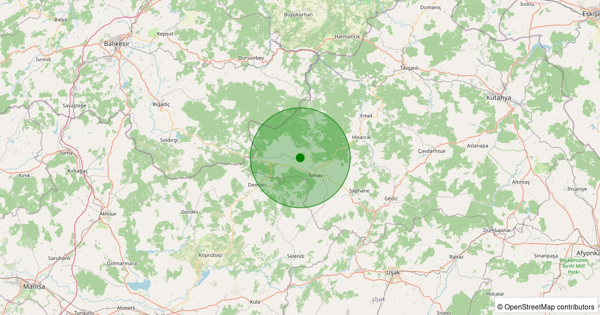 Son 7 gün içinde Simav - Güney/Cuma noktasından 100 km yarıçap içerisinde meydana gelen diğer depremler: