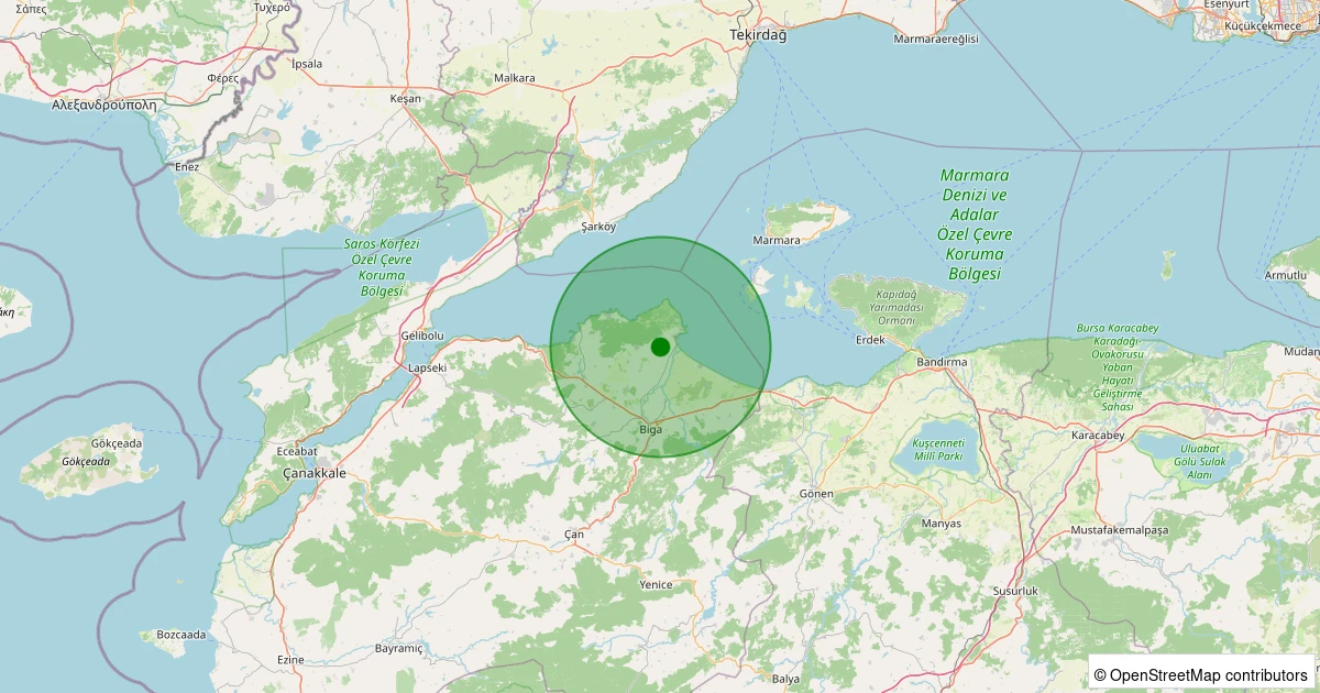 Son 7 gün içinde Biga - Ulucami noktasından 100 km yarıçap içerisinde meydana gelen diğer depremler:
